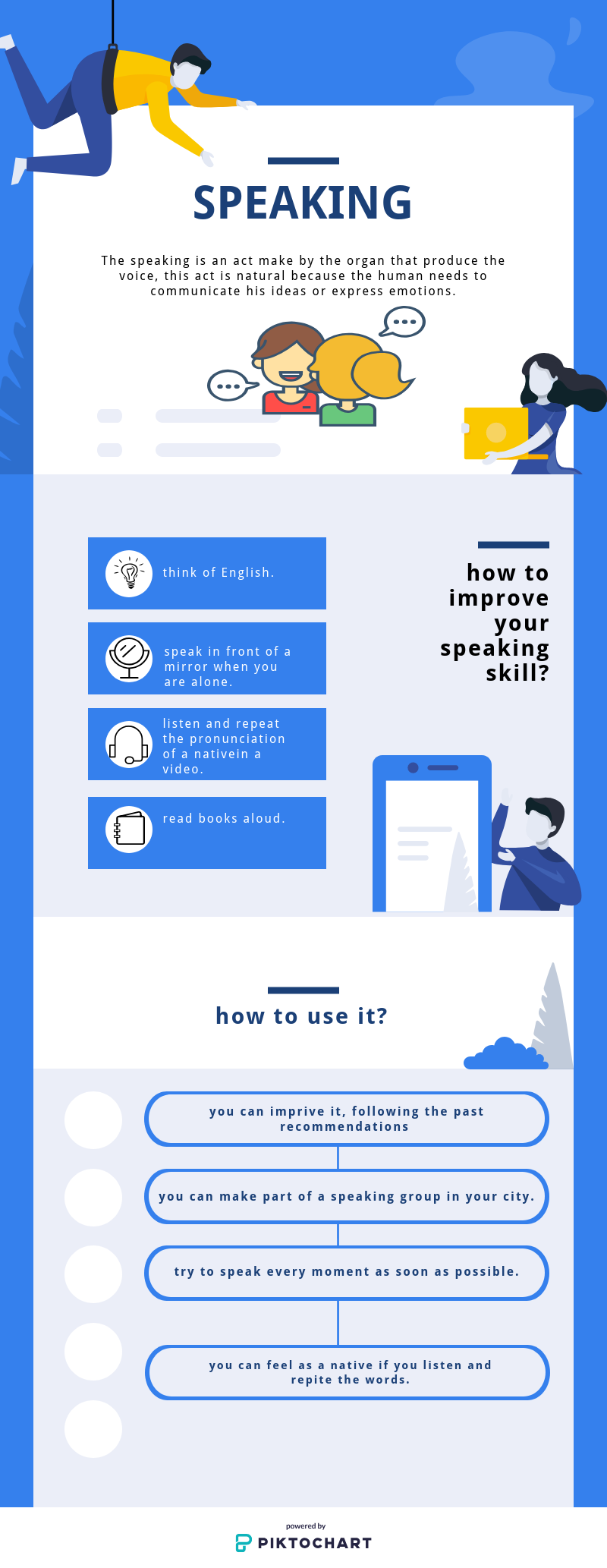 this infogram will help you to remmember why and how is important the speaking, furthemore it gives you some recommendations about it.